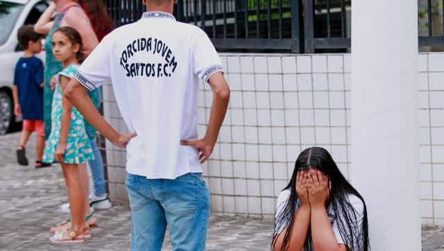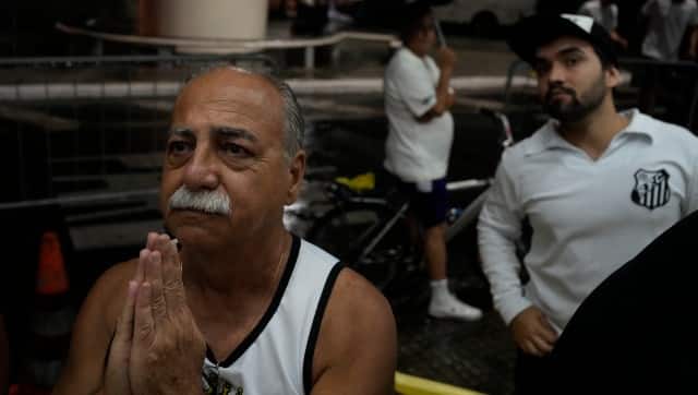 A fan prays for Brazilian soccer star Pele, outside the Vila Belmiro stadium, home of the Santos FC football club, in Santos, Brazil, Thursday, Dec. 29, 2022. (AP Photo/Matias Delacroix)[/caption] [caption id=“attachment_11903041” align=“alignnone” width=“640”]
