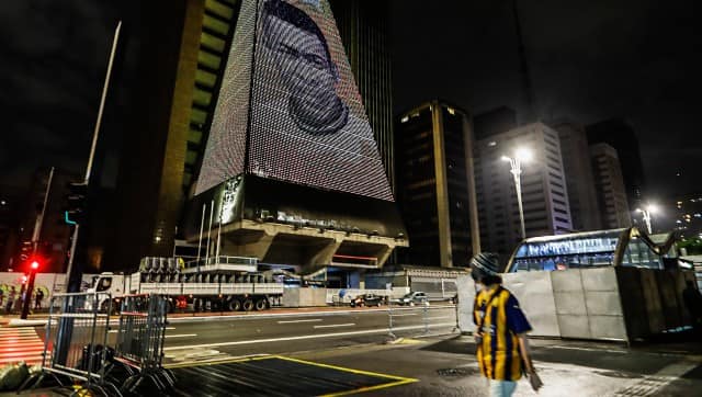 A person looks at the image of late football player Pele, reproduced on the building of the Federation of Industries of Sao Paulo, in Sao Paulo, Brazil, Thursday, Dec. 29, 2022. (AP Photo/Marcelo Chello)[/caption] [caption id=“attachment_11903051” align=“alignnone” width=“640”]