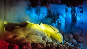 A partially frozen base of Horseshoe Falls is seen on lit by lights during sub freezing temperatures in Niagara Falls, Ontario on March 3, 2014. REUTERS