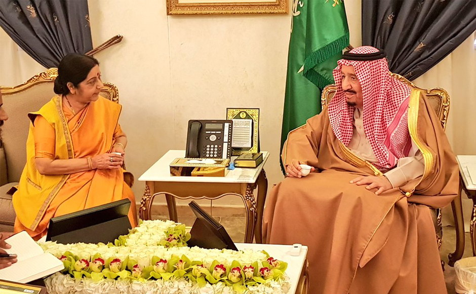 External Affairs Minister Sushma Swaraj met with Saudi Arabia’s King Salman and foreign minister Adel al-Jubeir, discussing bilateral relations between the two countries.