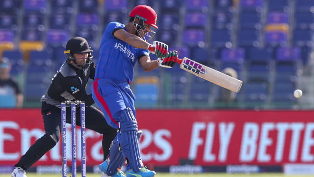 Afghanistan’s Najibullah Zadran bats during the Cricket Twenty20 World Cup match between New Zealand and Afghanistan in Abu Dhabi, UAE, Sunday, November 7, 2021. AP