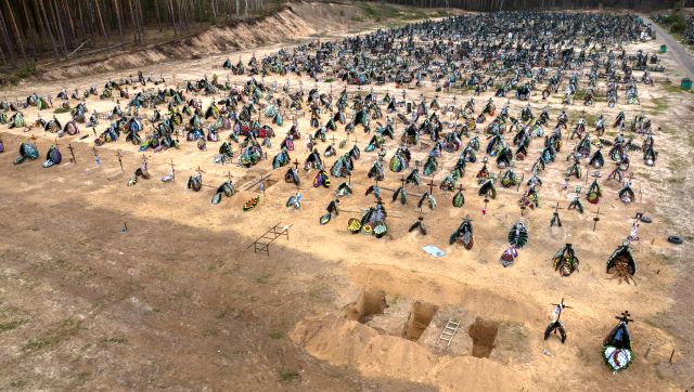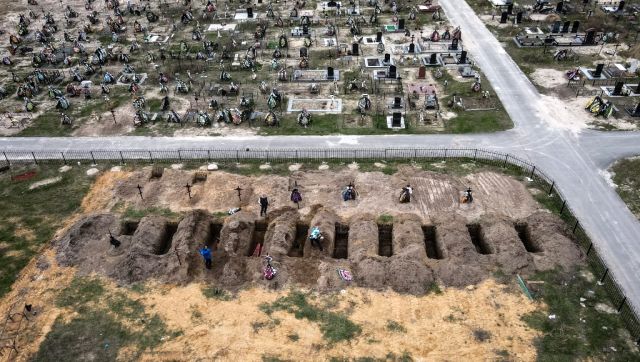 Russia’s attacks on Ukraine are so severe in some places that Ukrainians have set up mass graves to bury their dead. In Irpin, there are at least three rows of new graves for those killed during the Russian invasion of Ukraine. AFP