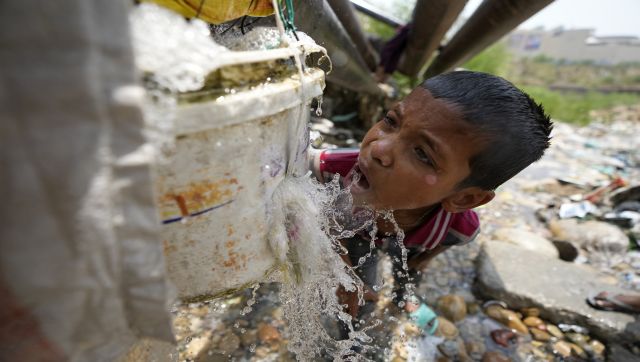 A woman drinks water as she waits for her turn to collect drinking water from a borewell of a temple complex in Ahmedabad. While March was India’s hottest ever in 122 years, April was no better with many parts of India observing their peak summer level temperatures. AP