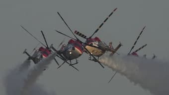 The 12th edition of DefExpo 2022 has begun and Gujarat's Gandhinagar is seeing the big guns! DefExpo 2022 -- India’s biggest-ever defence exhibition till date -- will see participating from a record 75 countries. Today, as Prime Minister Narendra Modi inaugurated the event, Indian Air Force's Sarang helicopters performed a display at the Sabarmati riverfront. AP