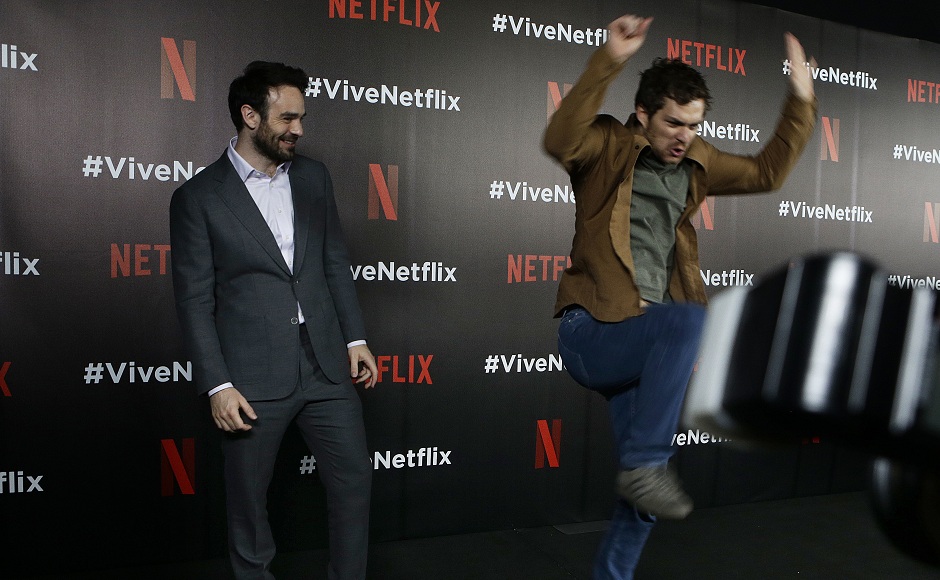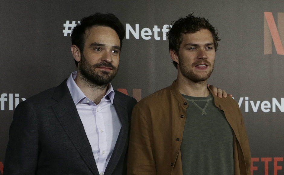 Actor Charlie Cox (left) and Finn Jones, from Marvel’s Netflix series The Defenders, pose for photos at a red carpet event in Mexico City, Wednesday, 2 Aug, 2017. Image via AP/Marco Ugarte