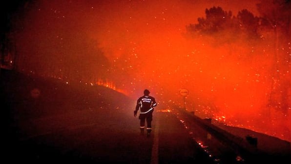 A firefighter walks on the road with a flash light during a wildfire in Manteigas, central Portugal, on 10 August. Around the world, fires burned nearly 23 million acres, showcasing how serious a problem it has become. In Portugal alone, some 92,000 hectares of land have already burned this year, according to government estimates, with heatwaves and drought producing tinder-like conditions. AFP
