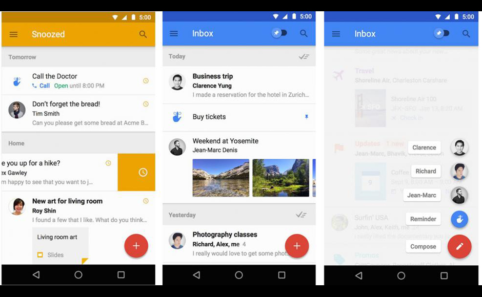 Inbox by Gmail: This app aims to redefine how users interact with email and turns into a to-do list. Inbox by Gmail. The Pin option in Inbox, let’s users choose certain emails that they want to pin right on top and users can snooze emails and reminders too.