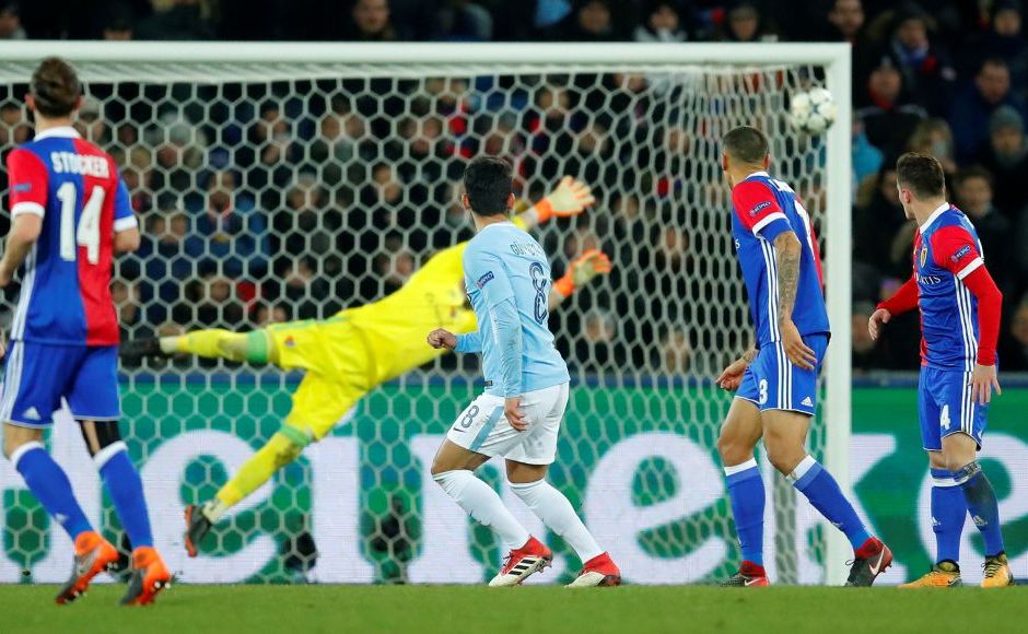 Illkay Gundogan scored a brace as Manchester City beat Basel to take an unassailable 4-0 lead to the second leg of their last 16 tie at home. Image courtesy: Twitter @ChampionsLeague