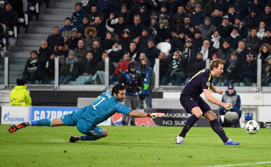 Kane pulled one back for Tottenham in the 35th minute when he latched on to a Dele Alli pass before slotting it past Gigi Buffon. Image courtesy: Twitter @ChampionsLeague