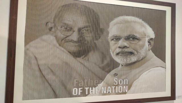 An artwork depicting Mahatma Gandhi as the Father of the Nation and Prime Minister Narendra Modi as the son of the nation. According to ANI, this e-auction will be the fourth in the series of auctions launched by the Prime Minister’s Office in 2019. News18