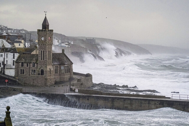 Millions of Britons are being urged to cancel travel plans and stay indoors amid fears of high winds and flying debris as the second major storm this week prompted a rare ‘red’ weather warning across southern England. (AP)
