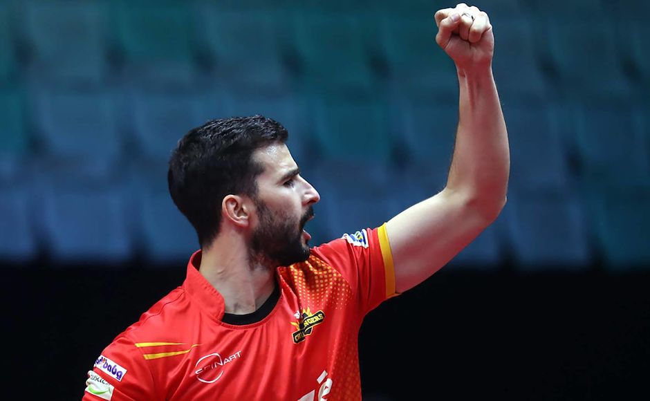 Andrej Gacina of Shaze Challengers celebrating after defeating Joao Monteiro of DHFL Maharashtra United in his second match of the day. UTT