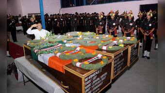 Army officers pay homage to seven army soldiers who were killed in the Uri attack, at Babatpur Airport in Varanasi on Monday. PTI