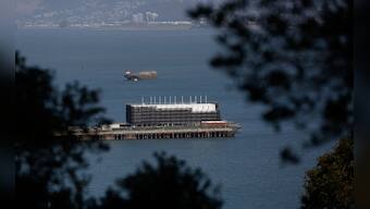 A barge built with four levels of shipping containers is seen at Pier 1 at Treasure Island in San Francisco, California. What is Google hiding in there? Reuters
