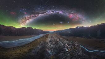 The Ridge: The photograph captures the twin glacial rivers with the Milky Way core off to the left of the image, as well as the famous Southern Cross and other pointers high in the centre sky. Image Courtesy: Tom Rae