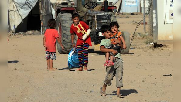 Internally displaced children prepare to return home to Anbar province, at a camp in southern Baghdad, Iraq on Thursday.