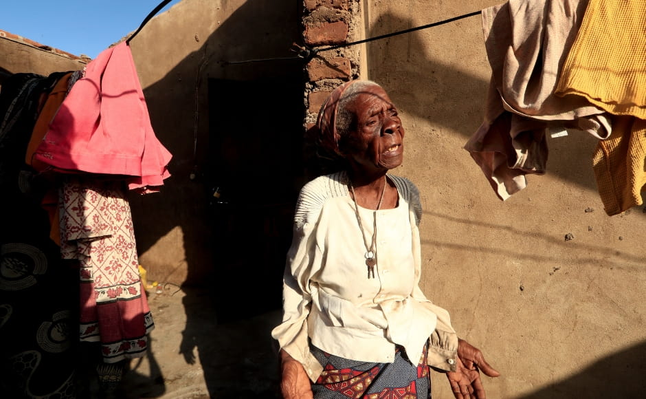 Another survivor from Cheia, Tchacaca Quembo, stands outside her damaged house. In 2000, Quembo’s home in the community of Quanuno was wrecked by severe floods. In March 2019, Cyclone Idai hit her new home. She explains that the wind ripped the roof off her house, and she survived by standing inside her bedroom, in the water from Friday to Sunday. Reuters/Zohra Bensemra.