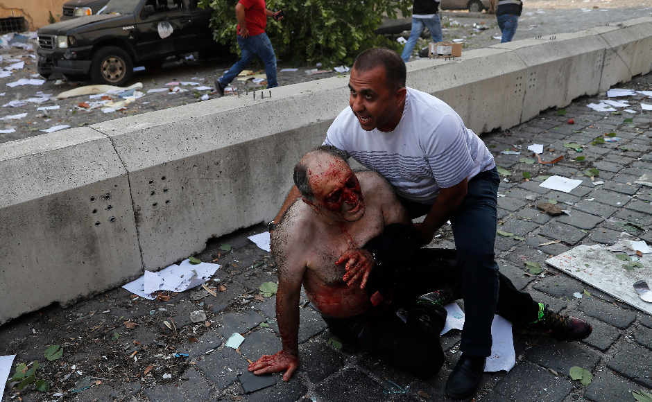 Witnesses reported seeing an orange cloud similar to the one appears when toxic nitrogen dioxide gas is released after an explosion. In the picture, a Lebanese man can be seen wounded by an explosion that hit the seaport of Beirut. AP
