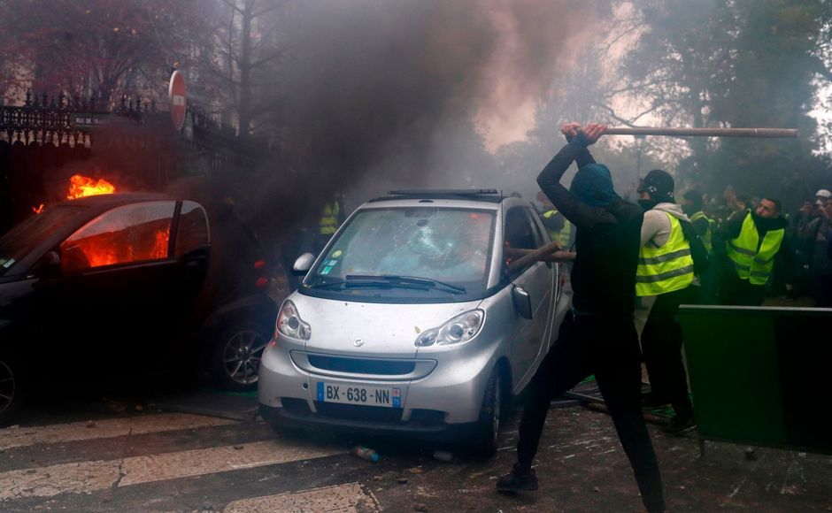 France’s most violent urban riot in more than a decade engulfed some of central Paris with demonstrators protesting against rising taxes and high cost of living.