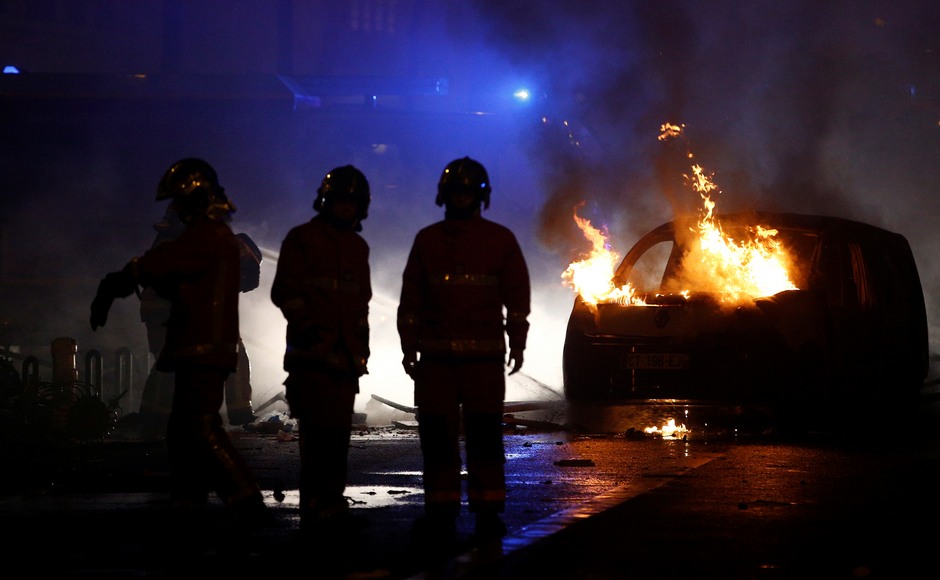 Pockets of demonstrators built makeshift barricades in the middle of Paris streets, lit fires, torched cars and trash cans, threw rocks at police and smashed and looted stores. AP