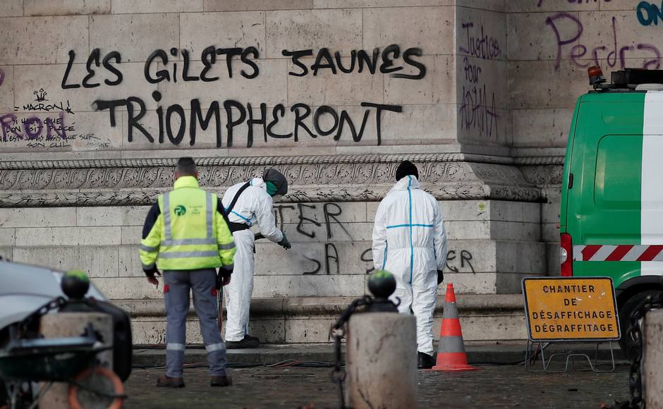 The yellow jacket movement began on 17 November. The protestors tagged the Arc de Triomphe with multi-colored graffiti, with messages such as — “The Yellow Vests will Triumph.” Reuters
