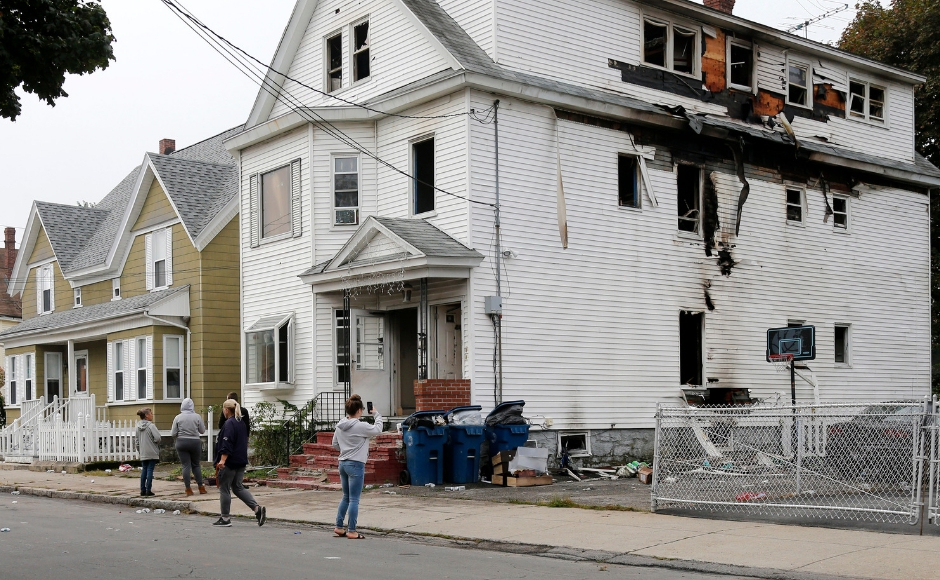 Investigators were working on Friday to pinpoint the cause of fire while a Red Cross employee briefed the media outside the Parthum School in Lawrence, Massachusetts. AP