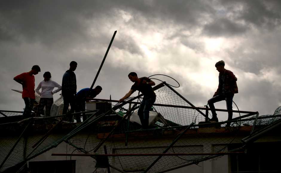 Some of the heaviest damage from Sunday night’s rare tornado was in the eastern borough of Guanabacoa, where the twister tore the roof off a shelter for dozens of homeless families. AP