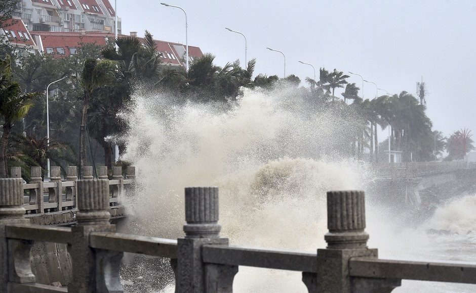 Typhoon Mangkhut barrelled into southern China after lashing the Philippines. More than 2.4 million people were evacuated in southern China’s Guangdong province. AP