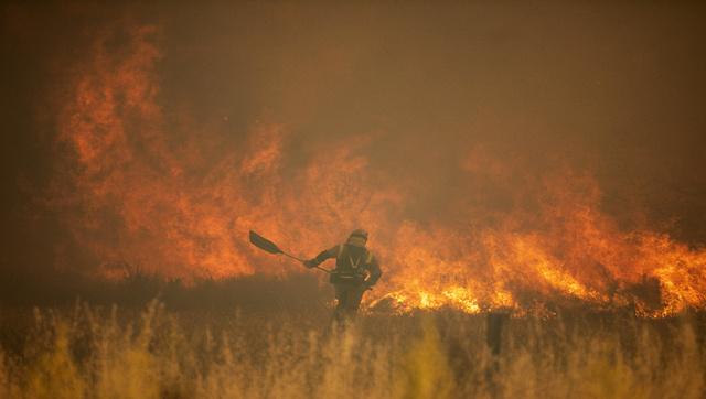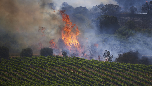 Flames rise in a vineyard in San Martin de Unx in northern Spain, Sunday, 19 June, 2022. AP
