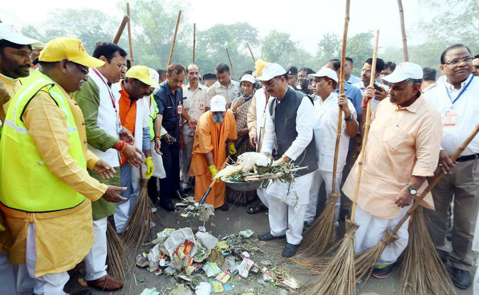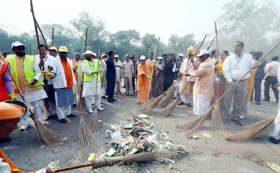 At least 500 BJP workers and social activists also took part in the mega cleanliness drive launched by chief minister around the west gate of Taj Mahal. Twitter/@CMOfficeUP