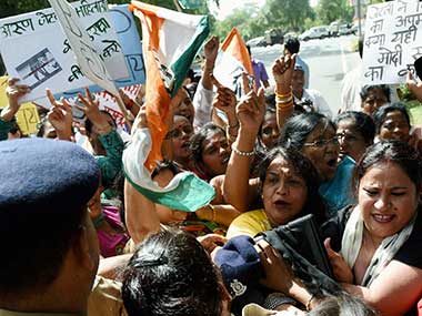 New Delhi: Activists of the All India Mahila Congress on Tuesday staged a demonstration at Jantar Mantar and slammed the Centre over its alleged “anti-women” policies. [caption id=“attachment_1677703” align=“alignleft” width=“380”] File image of Mahila Congress workers protest in New Delhi. PTI[/caption] The demonstrators participating in the protest tried to march towards the Parliament building but were stopped at a police barricade. Members of Mahila Congress from Delhi, Haryana, Madhya Pradesh, Punjab, Rajasthan and Uttar Pradesh participated in the protest. They carried posters and placards carrying ‘Teen Sal Desh Badhal’ and other slogans, slamming the Modi government. “Crime against women has increased by 30 percent under the Modi government. Imposing GST on sanitary napkins exposes the insensitivity of the government towards women,” said Shobha Oza, national president of the Mahila Congress. She said that Mahila Congress is pledged to expose the “anti-people” policies of the Modi government and uproot it in the Parliamentary elections in 2019.
