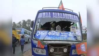 . [caption id=“attachment_5991631” align=“alignleft” width=“380”] A bus on which BJP supporters had travelled to the rally venue at Kanthi in East Midnapur was pelted with stones. ANI[/caption] Meanwhile, Governor of West Bengal Keshari Nath Tripathi