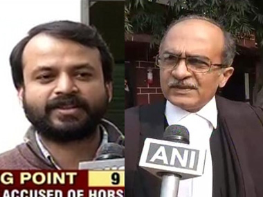 Even after rebel AAP leaders Prashant Bhushan and Yogendra Yadav were shown the door, the war of words between the two factions within the party only got dirtier. It first started with former AAP leader and senior Supreme Court advocate Prashant Bhushan accusing Ashish Khetan on Monday of planting stories in the Tehelka magazine favouring Essar.[caption id=“attachment_2205658” align=“alignleft” width=“380”]  Ashish Khetan (L) and Prashant Bhushan. Image courtesy ibnlive.com[/caption] “Ashish Khetan planted stories for Essar in Tehelka. He wrote stories in favour of 2G accused. Essar paid Tehelka Rs 3 crore for its Thinkfest,” Prashant told CNN-IBN. The senior lawyer also claimed that AAP’s Pankaj Gupta took Rs 2 crore from shell companies, which later on attracted the attention of the Income Tax department resulting in notices to the political outfit. The exposure on the Rs 2 crore was made earlier by the rebel group Aam Aadmi Volunteer Action Manch. Not one to sit quietly and lap up allegations, Khetan, a former Tehelka staffer, immediately asked if the source of funding of the burgeoning Bhushan empire was the Public Interest Litigation industry that Prashant was allegedly running. “The Bhushan family has over Rs 500 crore worth property. I want to know whether this has been earned through PILs. If this is the case, then filing PIL is a big industry,” Khetan said on Tuesday, according to a Indian Today report. Addressing a press conference today, he challenged Prashant saying that if the he remains unsuccessful in proving the allegations of paid news, the senior lawyer should quit public life. On the contrary, Khetan said that he would do the same if the allegations are proven to be true. https://twitter.com/ANI_news/status/590399459227410433 Khetan signed off but not before warning the father-son duo that he won’t spare them as they have challenged a common man like himself. However, Khetan’s counter-charge only made the battle uglier as veteran AAP leader Shanti Bhushan came out strongly in defence of his son Prashant. “Ours is the most honest family in the country, nobody can question either Prashant’s or my integrity,” AAP founding member Shanti Bhushan told ANI while defending themselves made by AAP leader Ashish Khetan. Reacting to his son Prashant being unceremoniously evicted from the Aam Aadmi Party, Shanti mocked the existing AAP leadership by asking them not to remain asleep but to expedite the process of throwing him out as well. https://twitter.com/ANI_news/status/590389176853401600 “I too attended Swaraj Samvad and delivered a speech there, where is my show cause notice? I’m waiting for one,” he said. The veteran leader did not spare AAP national convener and Delhi Chief Minister Arvind Kejriwal by saying that he should start wearing Hitler’s uniform as he has already adopted the Nazi leader’s demeanour. https://twitter.com/ANI_news/status/590388378291470336 “Arvind Kejriwal is certifying, if you believe in honesty you’ll be thrown out of the party,” Shanti, who also served as Union law minister before, told ANI.