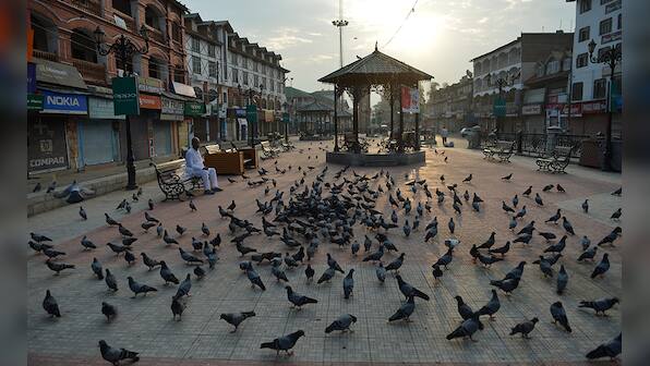 A Kashmiri sits after feeding pigeons during a curfew in Srinagar on 10 July, 2016. Sixteen people were killed and more than 200 others were injured in disputed Indian-administered Kashmir on 9 July after thousands defied a curfew following the death of a top rebel commander. AFP.