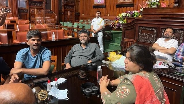 Reacting to the demand, Eshwarappa said: “Let them stay inside the assembly and legislative council forever.” “Let Shivakumar see what I had said. I had never ever insulted the national tricolour,” Eshwarappa said. Eshwarappa said there is no question of him resigning for any reason, and he is a patriot who had gone to jail during the emergency. “Let them protest, I won’t budge,” he said, and demanded that state Congress chief Shivakumar resign, accusing him and his party of ‘misusing’ the national flag for protests. Terming the stand taken by Congress leaders as anti-people, Chief Minister Basavaraj Bommai said, earlier too overnight protests have taken place in the assembly, but they were on issues concerning people, farmers and interests of the state, but this is a protest by misinterpreting a statement. “There is nothing wrong in Eshwarappa’s statement, there is nothing in his statement that is against law. As they (Congress) don’t have any other issues they are doing this. For the first time without any reason over-night protest is being held, this is not the sign of a responsible opposition. They feel they will get political mileage out of it, but they are wrong,” he said. At the time when people and the government are working towards sorting out issues and creating a conducive atmosphere for students in schools and colleges, and maintain peace, instead of working together and sending out a message of unity, Congress is trying to play politics, Bommai added. Speaker Vishweshwar Hegde Kageri, and former Chief Minister B S Yediyurappa tried in vain to end the logjam on the night of 17 February, 2022, after meeting Siddaramaiah in the Assembly premises. The Speaker had rejected the Congress’ adjournment motion demanding the dismissal of and sedition case against Eshwarappa. The Speaker also had held meetings of floor leaders to end the stalemate, but they were unsuccessful. It was in 2019 last time when the legislators had stayed put in the assembly overnight. At the time, it was the BJP MLAs then who were protesting against the delay in then Chief Minister H D Kumaraswamy taking a trust vote on the floor of the House. In 2010, Congress legislators had staged a similar protest against the then BJP government on the illegal mining issue. It was in 1996, when the first such overnight protest is said to have taken place in the assembly. It was by BJP then against the J H Patel government over power tariff hike. Earlier, as soon as the Assembly met for the day on 17 February, 2022, Congress members trooped into the well of the House to mark their protest. After the House paid tributes to former MLA Mallur Ananda Rao, who died on 14 February, Speaker Kageri took up the Question Hour, and Congress members began shouting slogans demanding action against Eshwarappa, calling him “Desha Drohi” (traitor). The Question Hour took place amid sloganeering from Congress members, who did not participate in it, despite repeated requests from the chair. Slogans like - “We want justice”, “We want resignation”, “Down, down to corrupt government”, “Eshwarappa - desha drohi”, “This Government is RSS’ puppet”, “BJP government is anti-national flag” - among others marred the proceedings. After Question Hour, the Speaker asked Leader of Opposition Siddaramaiah to speak on the Motion of Thanks to the Governor’s address, but he did not speak and continued to protest from the well along with Congress legislators. As the chaos continued, the Speaker adjourned the House till 3 pm. As Congress members continued their protest from the well of the assembly, shouting slogans demanding Eshwarappa’s resignation, when it met post lunch, Speaker Kageri adjourned the House for Friday. In the Legislative Council too, proceedings were marred by Congress’ protest with placards from the well, demanding action against Eshwarappa. Read all the Latest News , Trending News , Cricket News , Bollywood News , India News and Entertainment News here. Follow us on Facebook , Twitter and Instagram .