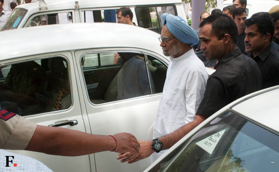 Former Prime Minister Manmohan Singh on his way to the march. Naresh Sharma/Firstpost