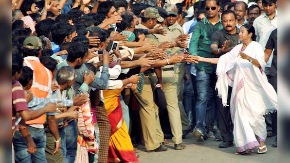 West Bengal Chief Minister and Trinamool Congress (TMC) supremo Mamata Banerjee interacts with the common people during an election rally in Bankura district of West Bengal. PTI