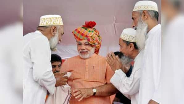 New Delhi: Ahead of Gujarat Chief Minister Narendra Modi’s rally in Bhopal, BJP has issued a circular saying stereotypical representation of Muslims should be stopped. The party is trying to reach out to Muslims and projecting its prime ministerial candidate Modi in a new avatar. Narendra Modi was caught on the back foot when refused to wear a skull cap offered by a Muslim cleric in his Sadbhavana Yatra in 2011. However, skull-cap weraing Muslims have been a recurrent feature in most of his rallies these days, courting controversy that BJP is trying to impose a dress code for the Muslims. [caption id=“attachment_1130223” align=“alignleft” width=“380”]  Modi with Muslims during his Sadbhavana Yatra. PTI. [/caption] However, BJP leader Mukhtar Abbas Naqvi said, “There is no dress code for Muslims to appear in the rallies, such kind of thinking is wrong. All state units have been told not to indulge in showcasing Muslims at rallies.” Taking a dig at the BJP, Minority Affair Minister Rahman Khan said, “How do we know they are Muslims? Anybody can buy and wear caps.”