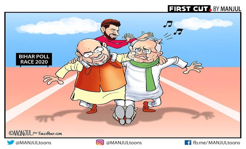 NewsTracker Nitish Kumar National Democratic Alliance NDA Manjul Manjul toon Bihar Assembly Election 2020 Toons by Manjul bihar elections 2020 bihar election 2020 LJP president Chirag Paswan