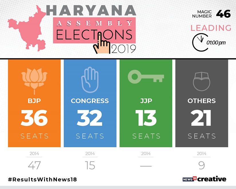 Haryana Election Result 2019 LATEST Counting and Updates: Even as several analysts said that the BJP performed below expectations in Haryana, Modi described the party’s performance as “unprecedented.” Amit Shah has said in a tweet after the general trend of the results became clear, “In the past five years, the Manohar Lal Khattar government has made every attempt to ensure public welfare under the central leadership of Modi ji. I thank the people for making the BJP the biggest party in the state and giving us an opportunity to serve the people again.” JJP’s Dushyant Chautala was quoted as saying by ANI