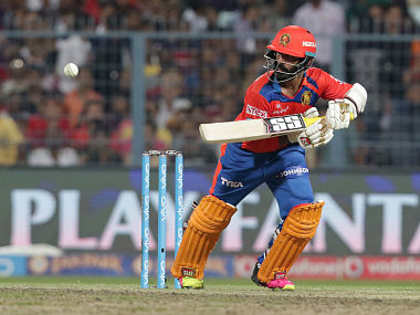 Kolkata: Dinesh Karthik led the way with a fluent half-century as Gujarat Lions snapped their three-match losing streak to reclaim the top spot with a comfortable five-wicket win over Kolkata Knight Riders in an IPL T20 cricket match, in Kolkata on Sunday. Chasing 159 on a slow Eden surface, the duo of Dwayne Smith (27) and Brendon McCullum (29) handed Lions a perfect launchpad with 42 from 5.3 overs. The duo fell in space of 15 runs when Shakib Al Hasan and Piyush Chawala took one each but it was sheer elegance from wicketkeeper batsman Karthik who scored a 29-ball 51 that had eight fours and a six to set up the chase. [caption id=“attachment_2771186” align=“alignleft” width=“380”]
