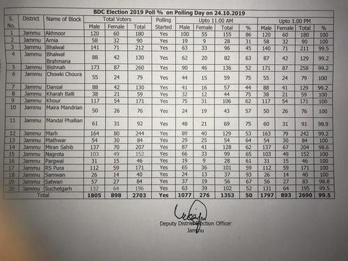 — have boycotted the first electoral exercise in the state after the Centre’s 5 August decision to scrap the special status under Article 370. As many as 26,629 electors — 8,313 women and 18,316 men — from across the state will cast their votes in their respective blocks to elect the BDC chairpersons. Any panch or sarpanch will be eligible for the post of block chairperson. According to officials, adequate security arrangements are in place at the polling stations, and for over 26,000 panches and sarpanches — elected in November-December in 2018 — who will also vote in their respective blocks to elect the BDC chairpersons. [caption id=“attachment_7547131” align=“alignleft” width=“380”] Security personnel keep vigil as voters line up outside a polling booth in Jammu and Kashmir. Image credit: Arjun Sharma/101Reporters[/caption] There are 316 blocks in the state, but the election will be held in 310 as two of them are without elected panches and sarpanches, and four blocks reserved for women have no women candidates, the officials said. Of the 310 blocks, candidates in 27 blocks have been elected unopposed. So voting will be held only in 283 blocks,