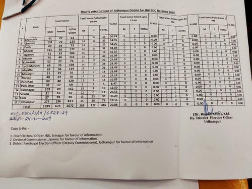 Jammu and Kashmir BDC Election Result 2019 LATEST Updates: The Jammu and Kashmir National Panthers Party (JKNPP) has won eight of the 17 blocks in Udhampur district while the BJP has managed to win just four blocks. The Bhim Singh-led JKNPP won Janganoo, Khoon, Kulwanta, Latti Marothi, Majalta, Parli Dhar, Ramnagar, and Chanunta blocks in the district. The BJP, on the other hand, won in four blocks namely Dudu Basantgarh, Ghordi, Panchari and Udhampur. BJP party workers in Rajouri district in Jammu and Kashmir were seen celebrating on the streets after the party’s candidates in the Jammu and Kashmir Block Development Council elections emerged victorious in several Muslims areas of the district. Saffron party candidate Mohammad Aslam from Darhal, Zahida Ashraf from Khwas, Darbar Choudhary from Rajouri, Parveen Akhter from Plangarh, Shamshad Begum from Manjakote and Advocate Khaliq Hussain from Qila Darhal, were among the key winners from the district. “The smooth conduct of BDC election is a tight slap on the faces of those who never wanted democracy to flourish in Jammu and Kashmir,” said BJP leader Vibodh Gupta while congratulating all elected candidates in Rajouri. “The success of the BDC elections and democracy at the grassroots level are some achievements of the Narendra Modi-led BJP government at the Centre that has become the biggest nightmare for the Abdullah-Mufti family,” Vibodh added. Meanwhile, in the Reasi district of Jammu, out of the 12 blocks, Independent candidates have won in eight blocks while the BJP has won in the four remaining blocks — Arnas, Bhomag, Jij Bagli and Panthal. A total of 1,092 candidates are in the fray in the election for chairpersons of 310 BDCs in Jammu and Kashmir, that was held on was held on Thursday. Of them, candidates in 27 BDCs have been elected unopposed. The electoral exercise, the first in the state after the abrogation of its special status, was boycotted by the Congress, the National Conference and the PDP. The final voter turnout in most districts of the 22 districts in Jammu and Kashmir was above 95 percent with the maximum in Srinagar, where a 100 percent turnout was registered. In the Jammu and Kashmir Block Development Council (BDC), the Jammu district recorded a final voter turnout of 99.5 percent. Eleven of the 20 blocks – Akhnoor, Arnia, Chowki Choura, Kharah Balli, Khour, Maira Mandrian, Mathwar, Miran Sahib, Nagrota, Pargwal and RS Pura – recorded a turnout of 100 percent. Senior Superintendent of Police Rajouri Yougal Manhas took stock of the situation in the polling booths in the district and said no untoward incidents were reported with peaceful polling being carried out in the entire district. He also added that no ceasefire violations have taken place either. “No ceasefire violation in LoC have taken place. All 19 blocks in Rajouri district have had smooth polling and no untoward incident was reported. In one or two blocks, there was even a turnout 100 percent, with most districts registering 80 to 90 percent turnout,” said Yougal. The voter turnout recorded in the hill district of Shopian stood at 82 percent, with polling being conducted in two centres, where four candidates were in the poll arena. The total number of voters from these two centres were 34. Polling was held peacefully in most districts, especially in Kulgam district. No major untoward incident has been reported during the election. “We had conducted voting in two centres in Shopian, where the polling was conducted peacefully. There are four candidates in fray from the district and the fate of them will be decided by 34 voters,” said Choudhary Mohammad Yasin, Deputy Commissioner of Shopian. According to officials, there are 72 candidates in the poll arena from Kathua district who are contesting in block developments councils (BDC) of Jammu and Kashmir election for the post of a chairperson. The total number of votes polled in Rajouri is 1,691 of a total of 2,687 votes till 11 am. In seventeen blocks – Chanunta, Chenani, Dudu, Ghordi, Jaganoo, Khoon, Kulwanta, Latti Marothi, Majalta, Moungri, Narsoo, Panchari, Parli Dhar, Ramanagar, Sewna, Tikri and Udhamour – the total number of votes polled till 10 am is 416. The voter turnout of all these 17 blocks is recorded at 20.08 percent. Peaceful voting in Rajouri district of Jammu region is currently underway amid heavy security arrangements. A total of 164 observers, 280 Returning Officers, 280 Assistant Returning Officers and 860 polling staff has been deployed for the Jammu and Kashmir Block Development Council (BDC) polls. Polling in the Jammu and Kashmir block development council (BDC) began on Thursday morning amid tight security, with the Congress, National Conference and the PDP boycotting the first electoral exercise after abrogation of the state’s special status. “The polling has started at all the polling stations from 9.00 am this morning. There has been no reports of delay from anywhere,” state Chief Electoral Officer Shailender Kumar told PTI. The highest number of 101 candidates are trying their luck from north Kashmir’s Kupwara district, followed by nearby Baramulla (90), Jammu (82), Rajouri (76), Doda (74), Kathua (72) Udhampur and Budgam (58 each), Kishtwar (44), Ramban (43) and Reasi (39), officials said. Leh and Kargil districts together accounted for 74 candidates – 38 from Kargil and 36 from Leh, while Shopian district in south Kashmir has the lowest number of only four candidates. Director General of Police Dilbag Singh on Wednesday reviewed the law and order situation in Jammu region and directed for beefing up of security around vital installations, including the airport, railway stations and civil secretariat. The DGP chaired the high level joint meeting of various security agencies at Police Control Room here and took stock of the security situation in Jammu region, preparedness for Block Development Council (BDC) Election, situation on the borders, s