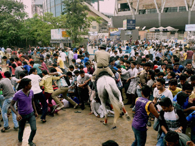 Kolkata: A West Bengal minister tweaked a famous Shahrukh Khan movie dialogue to dismiss as a “petty matter” the injury to seven people in a stampede outside the Eden Gardens during Tuesday’s felicitation to Indian Premier League (IPL) winners Kolkata Knight Riders. Chaos reigned supreme outside the stadium as thousands of people struggled to get inside, often breaking barricades and giving a harrowing time to the vastly outnumbered police force. [caption id=“attachment_1555199” align=“alignleft” width=“380”]  A police man falls from his horse while evicting the mob from the front of Eden Garden during a felicitation programme of IPL winning Kolkata Knight Riders team, in Kolkata. PTI[/caption] The security personnel resorted to frequent pushing and shoving and even cane charged the crowds to disperse them. Reacting to the incident, Urban Development Minister Firhad Hakim urged the media to focus on the grand spectacle inside rather than the “petty matter” that happened outside. “Badi-badi events mein chhoti-chhoti baatein hoti rehti hain (in big events, minor things do happen),” Hakim said, tweaking Shahrukh Khan’s dialogue from the movie “Dilwale Dulhania Le Jayenge”. “Our own team KKR has won. Lakhs of people are happy watching this felicitation ceremony, you should focus on the grand spectacle, so what if 10 people fell down,” Hakim told media persons. A TV grab, however, showed one of the stampedes happened after the minister standing outside the stadium instructed police to remove the barricades and let the people into the ground. Sports Minister Madan Mitra defended the strict police action. “What can police do if there is a tsunami of people? If police didn’t take action, then there could have been a stampede,” Mitra said, claiming over two lakh people came for the event. Incidentally, the stampede occurred a little after Chief Minister Mamata Banerjee, who presided over the ceremony, directed police to allow entry to the spectators waiting outside. Condemning the police action, the Congress and the BJP demanded a probe into the cane-charging on the crowds. “All my happiness of KKR becoming champions turned sour after seeing innocent people, including women and children, being battered by police. There is an immediate need to probe the cane-charging by police,” Congress leader Pradip Bhattacharya said. “We condemn the attitude of police and demand an immediate inquiry into the incident,” state BJP president Rahul Sinha said. IANS