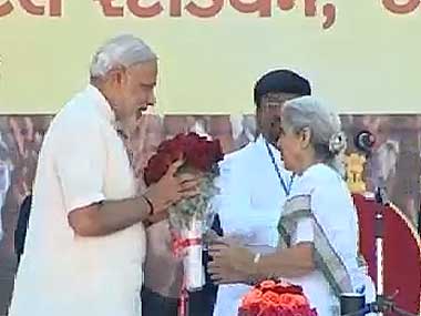 Ahmedabad: Narendra Modi, who led the BJP to an emphatic victory in the assembly elections, was today sworn in as Gujarat Chief Minister for the fourth time. He was administered the oath of office and secrecy by Governor Kamla Beniwal at an impressive ceremony at Sardar Patel Stadium. Modi was sworn in along with seven ministers of Cabinet rank and nine Ministers of State. Nitin Patel, Anandi Patel, Raman Vora, Bhupendrasinh Chudasama, Saurabh Patel, Ganpat Vasawa, Babhbhai Bokhiariya took oath as Cabinet ministers, while Purshottam Solanki, Parbat Patel, Vasuben Trivedi, Pradeepsinh Jadeja, Liladhar Vaghela, Rajnikant Patel, Govind Patel, Nanubhai Vanani and Jayanti Kavadiya took oath as Ministers of State. A galaxy of top BJP leaders and those of its allies were present at the swearing-in ceremony. [caption id=“attachment_569486” align=“alignleft” width=“380”]  Screengrab of Modi’s swearing in ceremony.[/caption] Those in attendance included BJP chief Nitin Gadkari, senior leader L K Advani, Sushma Swaraj, Arun Jaitley, party’s leaders in the Lok Sabha and Rajya Sabha respectively, Chief Ministers of Madhya Pradesh Shivraj Singh Chouhan and his Chhattisgarh counterpart Raman Singh. The presence of Tamil Nadu Chief Minister J Jayalalithaa, added grist to speculation about a possible realignment of her AIADMK with BJP-led NDA. Punjab Chief Minister Prakash Singh Badal, Indian National Lok Dal leader Om Prakash Chautala, Shiv Sena president Uddhav Thackeray, his cousin and MNS chief Raj Thackeray, RPI leader Ramdas Athawale were also present. As expected, Bihar Chief Minister Nitish Kumar, who has been keeping distance from Modi, as also his deputy Sushil Kumar Modi, were conspicuous by their absence. However, Bihar BJP president C P Thakur attended the ceremony. Modi’s mother Heeraben, who was also present, was seen flashing the victory sign. Modi greeted all prominent leaders present at the ceremony before taking oath in Gujarati amid chants of Bharat Mata Ki Jai (Victory be to mother India). PTI