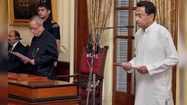 Senior Congress leader Kamal Nath being sworn-in as the Protem Speaker of the newly constituted Lok Sabha by President Pranab Mukherjee at Rastrapati Bhawan. PTI