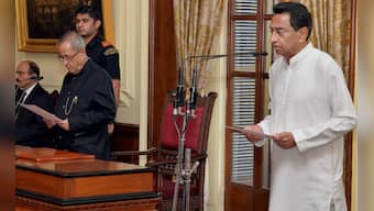 Senior Congress leader Kamal Nath being sworn-in as the Protem Speaker of the newly constituted Lok Sabha by President Pranab Mukherjee at Rastrapati Bhawan. PTI