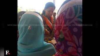 Supriya Sule being welcomed in the village by local women. Kavitha Iyer/Firstpost