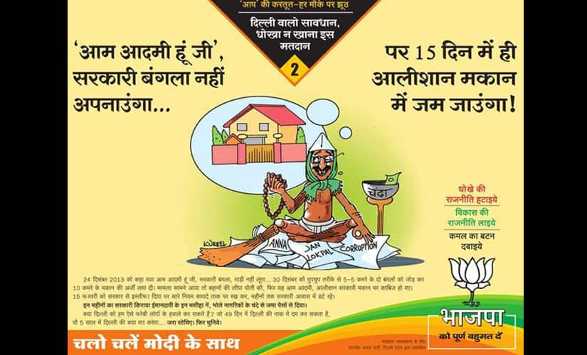 In another advertisement the BJP accused Kejriwal of wanting a lavish home. The ad said, “Aam Aadmi hoon ji sarkari bungla nahi apnaunga, per pandra din mein hi aleeshan makaan mein jam jaunga.” Angry over the ads, the party said they would approach the Election Commission and demand action against the BJP.