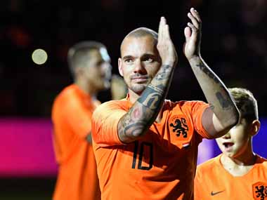 The Hague: The Netherlands’ most-capped player Wesley Sneijder announced on Monday his retirement from football, bringing down the curtain on a trophy-laden career that spanned 17 years. [caption id=“attachment_7152861” align=“alignleft” width=“380”]  File image of Wesley Sneijder. Reuters[/caption] The 35-year-old, who played 134 times for his country, made the announcement while speaking to the YouTube channel of his hometown club FC Utrecht after having bought a corporate box at their stadium. “My connection to the town is big. Now I’ve retired from football I want a nice place to share my memories,” he said. Sneijder, who made his international debut in 2003 aged 19, picked up a World Cup runners-up medal in 2010 as the Oranje were beaten by a dominant Spain in the South Africa final. His displays earned him the Silver Ball for the tournament’s second best player behind Uruguay’s Diego Forlan. Four years later in Brazil he took his side to third place after missing a penalty in the semi-final shoot-out loss to Argentina. He was also named in the Euro 2008 Team of the Tournament despite his team’s quarter-final exit at the hands of Russia. His run to the 2010 final with the Netherlands came after his finest season in club football, as the number 10 led Inter Milan’s charge to a Serie A, Coppa Italia and Champions League treble under Jose Mourinho. An Ajax academy graduate in 2002, Sneijder won the Eredivisie title and two Dutch Cups in his five years in the capital club’s first team before moving to Real Madrid, where he linked up with countryman Arjen Robben. He won the La Liga title in 2008 before making the move to Inter a year later, winning that famous treble before a succession of injuries saw him moved on to Gala, where he picked up two more league titles and three Turkish Cups in four years. He finished his playing career Al Gharafa in Qatar’s top-flight.